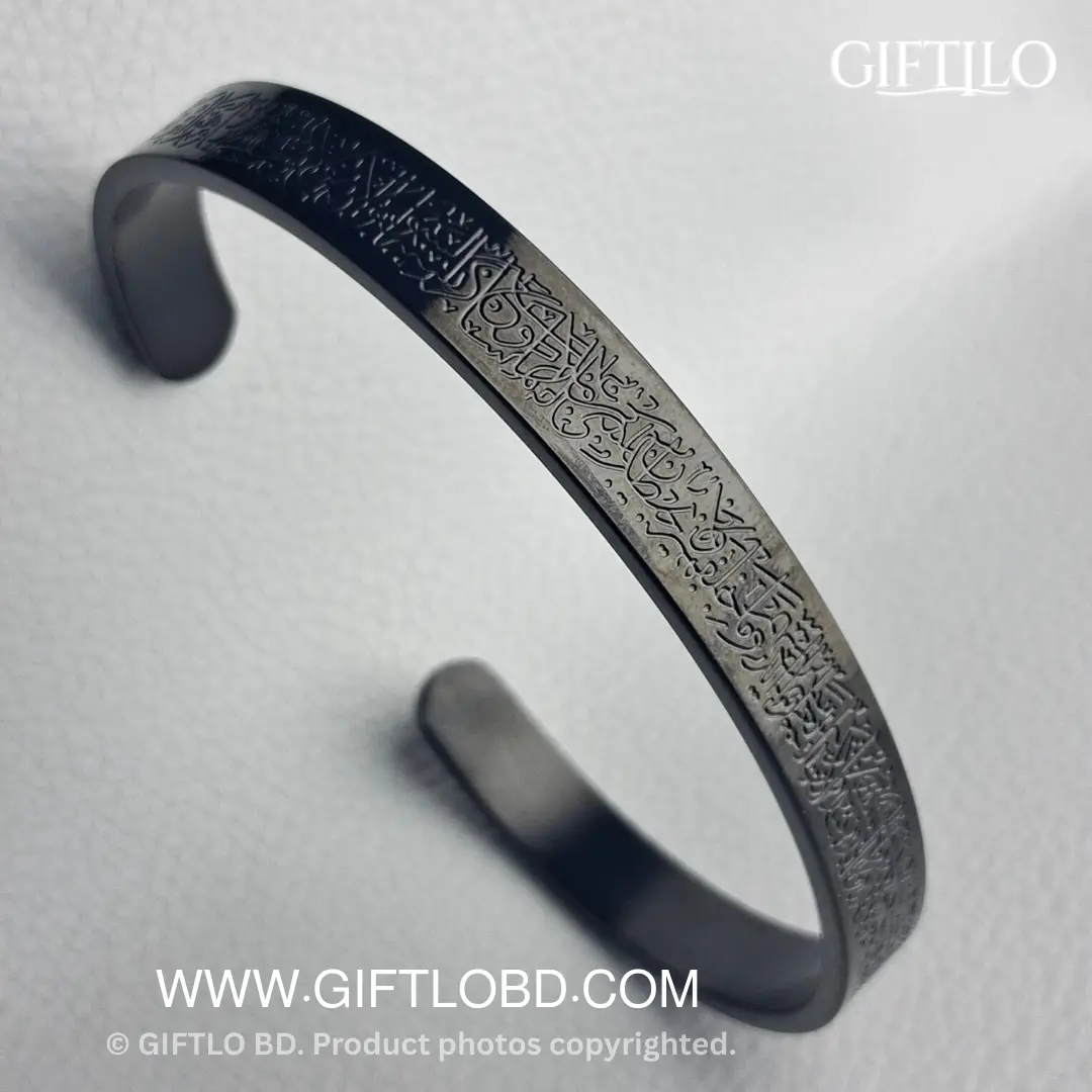 পুরো ব্রেসলেট জুড়ে নিখুঁতভাবে খোদাই করা আছে পবিত্র আয়াতুল কুরসি। Adjustable সাইজ হওয়ায় যেকোনো হাতে সহজেই পরা যাবে।