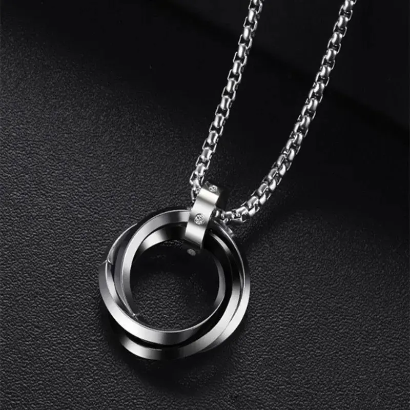 মডার্ন ও এলিগেন্ট ডিজাইনের এই থ্রি-রিং পেন্ডেন্ট আপনার স্টাইলে যোগ করবে প্রিমিয়াম টাচ। সিলভার ও ব্ল্যাক কম্বিনেশনের ইউনিক সার্কুলার ডিজাইন এবং উপরের অংশে স্টোন ডিটেইল এটিকে করেছে আরও আকর্ষণীয়।