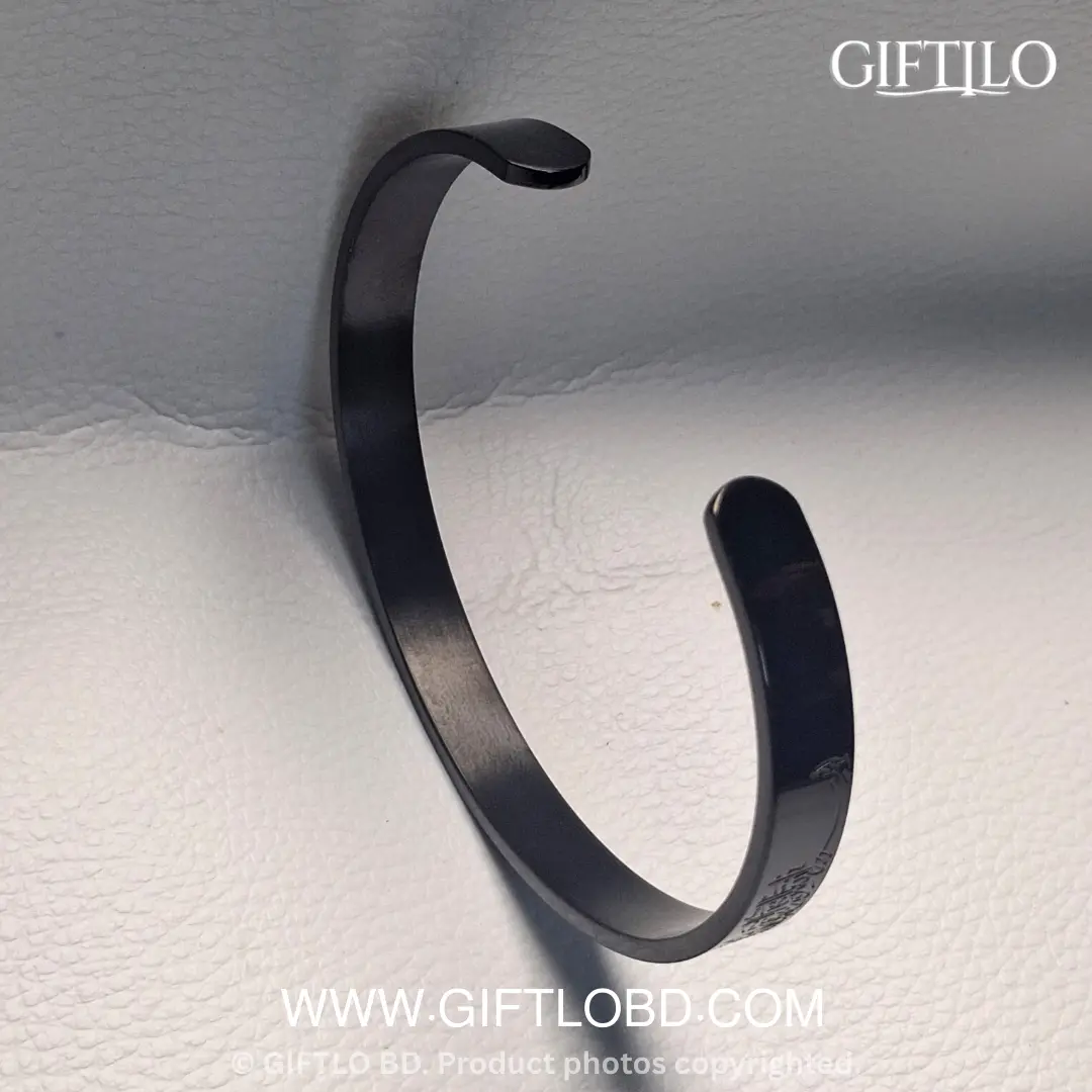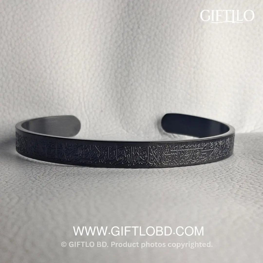 প্রিমিয়াম Stainless Steel দিয়ে তৈরি এই এলিগেন্ট Black ব্রেসলেটে খোদাই করা আছে পবিত্র Ayat Al-Kursi (The Throne Verse), যা আপনাকে দেবে আধ্যাত্মিক প্রশান্তি ও একটি পরিশীলিত ইসলামিক লুক।