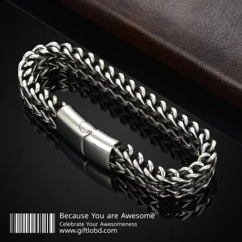 আপনার সাধারণ আউটফিটকে মুহূর্তেই লাক্সারি লুকে রূপান্তর করতে নিয়ে নিন আমাদের Magnetic Steel Bold (Silver Edition)। এর গর্জিয়াস সিলভার ফিনিশ এবং নিখুঁত ফ্রেঞ্চ হুইট চেইন ডিজাইন আপনার ব্যক্তিত্বকে করবে আরও মার্জিত ও স্মার্ট।